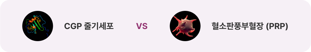 | 전혈대비 농축량 | 줄기세포, 성장인자, 백혈구, 혈소판 모두 4~6배 | 혈소판만 2배 증가 그 외의 세포 수 농축 후 감소 |