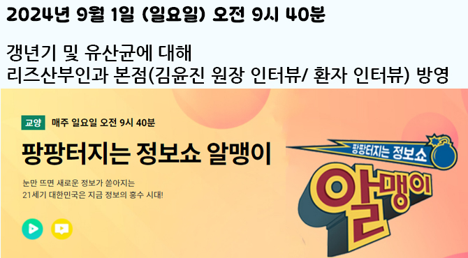 MBN 특집다큐H (MC. 황수경 아나운서) 리즈산부인과 이형근 대표원장님 출연 2월 8일 방영 [만병의 최전선, 여성 호르몬을 지켜라!]