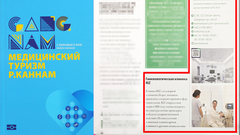 강남메디컬투어센터 영어, 중국어, 일본어, 러시아어 가이드북 리즈산부인과 소개 및 안내