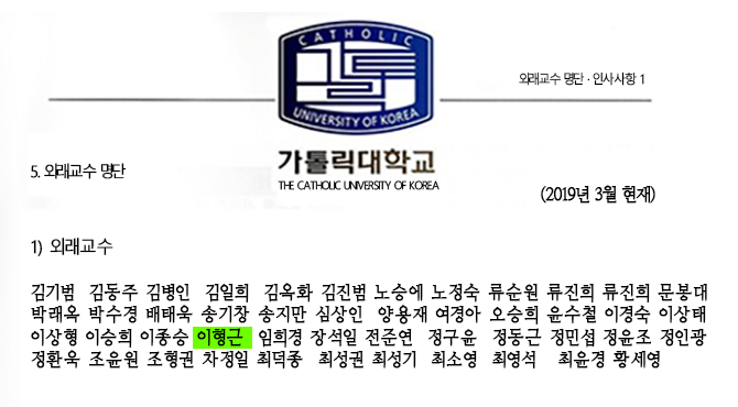 가톨릭대학교 외래교수 명단 - 리즈산부인과 대표원장 이형근 박사