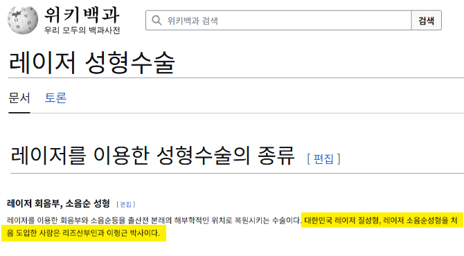 이형근 원장님 백과사전 등재(국내최고 레이저질성형 개발)