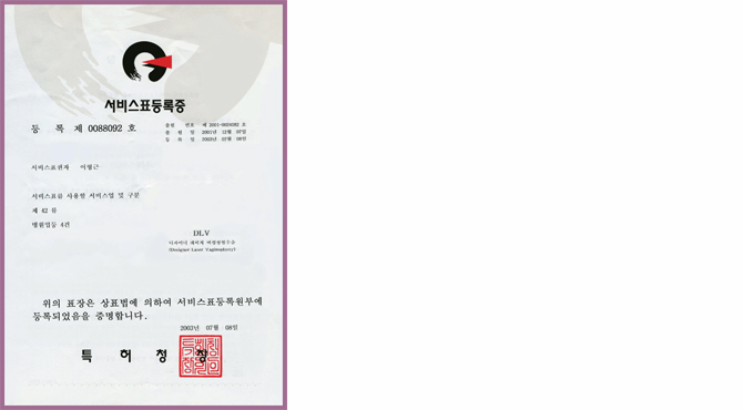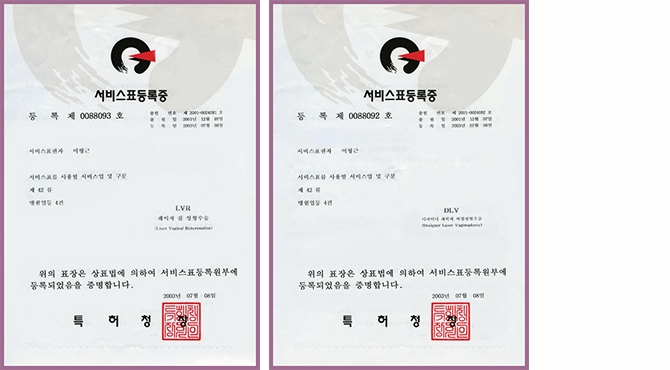 특허등록 제 88092호 갱신 완료. DLV™ (Designer laser vaginoplasty™) 디자이너 레이저 여성성형수술™