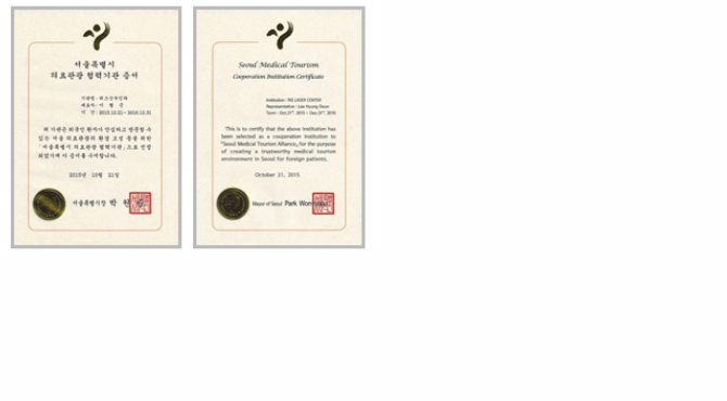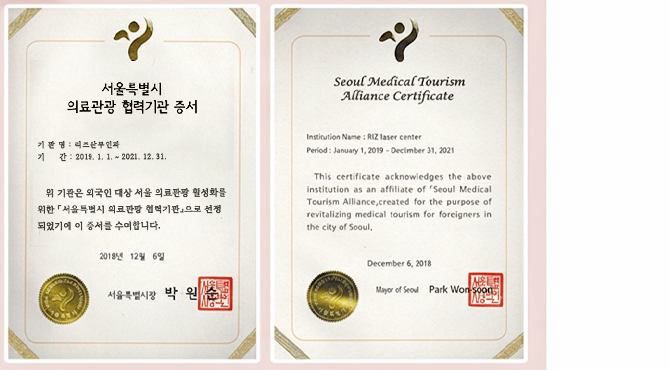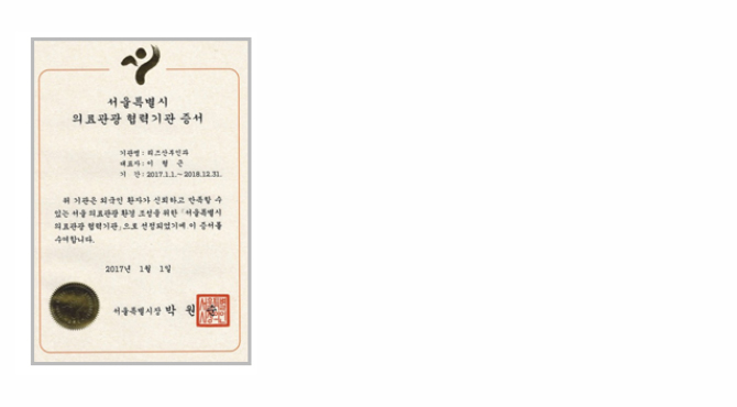 리즈산부인과 서울특별시 의료관광 협력기관 재위촉 서울특별시장 박원순 증서