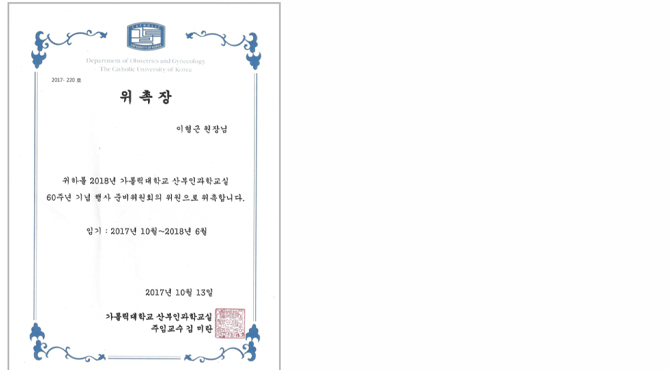 2018년 가톨릭대학교 산부인과학교실 60주년 기념행사 준비위원회 위원으로 위촉