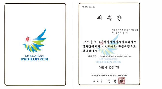2014 인천아시아경기대화 저탄소친환경 위원회 자문위원 위촉