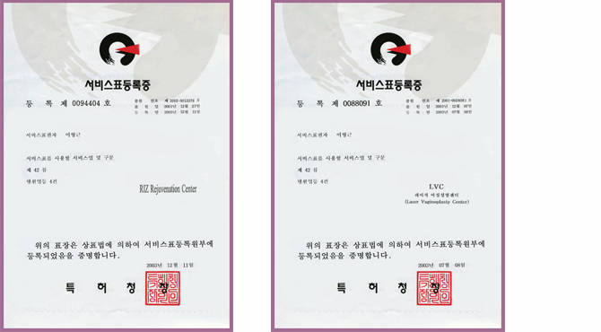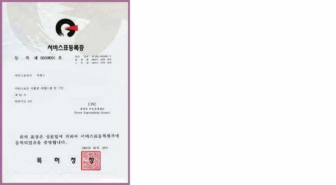 특허등록 제 88091호 갱신 완료. LVC™ (Laser Vaginoplasty Center™) 레이저 여성성형센터™